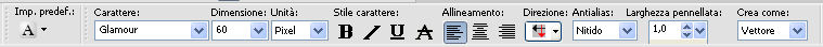 Il mio font: Glamour, dimensione 45, direzione verticale, crea come vettore.