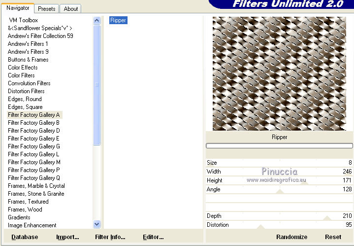 Effetti>Plugins>Filters Unlimited - Filter Factory Gallery A - Ripper.