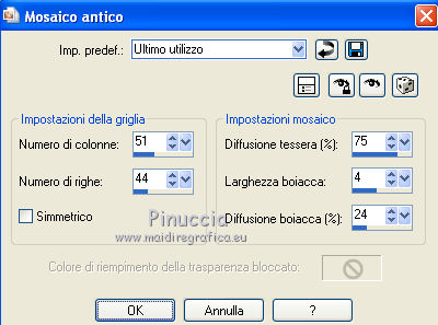 Effetti>Effetti di trama>Mosaico antico, con i settaggi precedenti.