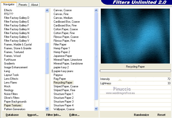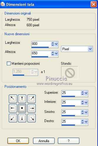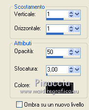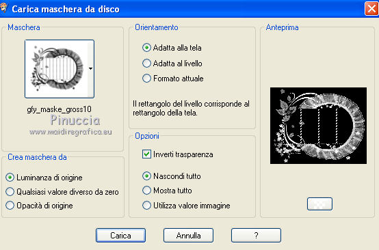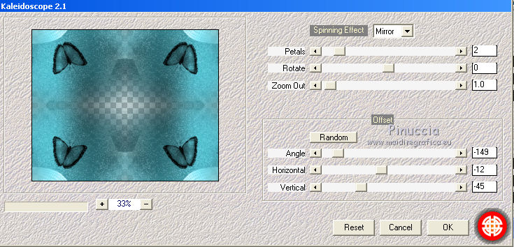 qui puoi trovare qualche risposta ai tuoi dubbi. Se l'argomento che ti interessa non è presente, ti prego di segnalarmelo. Questo tutorial è stato creato con PSP 9, ma può essere eseguito anche con le altre versioni di PSP. Per tradurlo, ho usato PSP X. Questo tutorial è una creazione di ©Christa e non può essere copiato su altri siti nè essere offerto per il download. Lo stesso vale per la mia traduzione. Il materiale viene da vari gruppi di condivisione. Il copyright appartiene ai rispettivi autori. Grazie ai creatori dei tubes che mettono a disposizione il loro lavoro in vari gruppi di condivisione. Occorrente: Materiale qui Per i tubes grazie Betsie e per la maschera Susanne Rispetta il lavoro degli autori, non cambiare il nome del file e non cancellare il watermark. Filtri: in caso di dubbi, ricorda di consultare la mia sezione filtri qui Mehdi - Kaleidoscope 2.1 qui Graphics Plus - Cross Shadow qui Xero - Improver qui Filters Unlimited 2.0 qui Questo è un tutorial extra per i partecipanti al 2º Dreamers-Contest. http://www.silles-dreamteam.de/wbb2/hmportal.php (indirizzo non più valido)![]() ***** Regole per partecipare al contest: La maschera di Susan è obbligatoria. Tutti i plugins e gli effetti sono obbligatori; si possono cambiare i settaggi. Il filtro Improver potrebbe non funzionare su tutti i tubes. L'uso dell'immagine di sfondo è facoltativo. Volendo, si può anche usare. In ogni caso, se si usa un'altra immagine, è obbligatorio applicare il filtro Kaleidoscope. I tube accessori sono di libera scelta; il tube usato nell'esempio non va usato per il Contest. Aggiungere il watermark del contest. Le dimensioni dell'immagine sono obbligatorie: 800 x 650 pixels. Nessuna Animazione Attenzione: per il contest NON aggiungere il proprio nome al lavoro. Watermark del contest ***** Metti la maschera nella cartella Maschere. Apri il resto del materiale in PSP. 1. Apri una nuova immagine trasparente 750 x 600 pixels. Imposta il colore di primo piano con il colore chiaro #3a9ac3, e il colore di sfondo con il colore scuro #1e4f65. Riempi l'immagine trasparente con il colore di sfondo (tasto destro del mouse).Effetti>Plugins>Graphics Plus - Cross Shadow, con i settaggi standard. ![]() Effetti>Plugins>Filters Unlimited 2.0 - Paper Textures - Recycling Paper. ![]() 2. Apri image_cg.pspimage (o un tuo elemento a scelta), e vai a Modifica>Copia. Torna al tuo lavoro e vai a Modifica>Incolla come nuovo livello. Qui, se stai usando altri colori, puoi colorizzare (sul Viraggio vedi qui), Cambia la modalità di miscelatura di questo livello in Luce netta. Livelli>Nuovo livello raster. Riempi con il colore di primo piano.Livelli>Carica/Salva maschera>Carica maschera da disco. Cerca e carica la maschera gfy_maske_gross10: ![]() Livelli>Unisci>Unisci gruppo. Effetti>Plugins>Graphics Plus - Cross Shadow, con i settaggi precedenti. Effetti>Effetti 3D>Sfalsa ombra: ![]() Ripeti l'Effetto Sfalsa ombra, cambiando verticale e orizzontale con -1. 3. Apri il tuo tube - il mio Betsie_289_13_okt.2009 - e vai a Modifica>Copia. Torna al tuo lavoro e vai a Modifica>Incolla come nuovo livello. Posiziona il tube come preferisci.Effetti>Effetti 3D>Sfalsa ombra, con il colore nero. ![]() Effetti>Plugins>Xero - Improver: (dovrai valutare, perchè potrebbe non essere adatto al tuo tube). ![]() 4. Ora aggiungi il tube accessorio sul lato sinistro dell'immagine, e cambia la modalità di miscelatura di questo livello in Luce diffusa. Attiva il livello Raster 1. Selezione>Seleziona tutto. Selezione>Modifica>Contrai - 6 pixels. Selezione>Inverti. Livelli>Nuovo livello raster. Livelli>Disponi>Porta in alto. Riempi con il colore di primo piano.Effetti>Plugins>Graphics Plus - Cross Shadow, con i settaggi precedenti. Effetti>Effetti 3D>Smusso a incasso. ![]() Selezione>Deseleziona. 5. Attiva nuovamente il livello Raster 1. Selezione>Seleziona tutto. Immagine>Ritaglia la selezione. Immagine>Dimensione tela. ![]() Livelli>Nuovo livello raster. Livelli>Disponi>Sposta giù. Riempi il livello con il colore di sfondo.Effetti>Plugins>Graphics Plus - Cross Shadow, con i settaggi precedenti. ![]() Selezione>Seleziona tutto. Selezione>Modifica>Contrai - 6 pixels. Selezione>Inverti - Attenzione: nessun nuovo livello. Riempi con il colore di primo piano.Effetti>Plugins>Graphics Plus - Cross Shadow, con i settaggi precedenti. Effetti>Effetti 3D>Smusso a incasso, con i settaggi precedenti. Selezione>Deseleziona. Attiva il livello Raster 2. Effetti>Plugins>Mehdi - Kaleidoscope 2.1 (obbligatorio per il contest). ![]() Attiva il livello superiore, e aggiungi il tuo testo o usa quello fornito. La modalità di miscelatura di questo livello è in Luce netta. Aggiungi un angolo e applica l'Effetto Sfalsa ombra con i seguenti settaggi e con il colore nero. ![]() Se necessario, colorizza per adattare l'angolo ai tuoi colori. Livelli>Duplica. Immagine>Rifletti. Livelli>Unisci>Unisci giù. Livelli>Duplica. Immagine>Capovolgi. Aggiungi il watermark del Contest. Livelli>Unisci>Unisci tutto e salva in formato jpg. Per partecipare al contest: Salva l'immagine come Maske_nomegruppo.jpg Oggetto: Maske: mailto:wetti1@bastelhexe.net?subject=Maske" class="Stil18" mail non più valida. ![]() Se hai problemi o dubbi, o trovi un link non funzionante, o anche soltanto per un saluto, scrivimi 19 Ottobre 2010 |