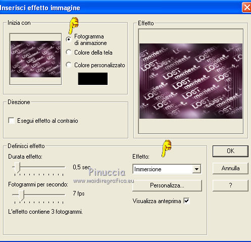 seleziona l'Effetto Immersione con i seguenti settaggi; quindi clicca su Personalizza.