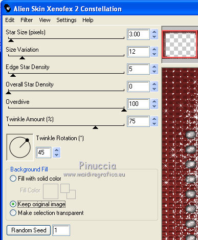 Ripeti l'Effetto Constellation con gli stessi settaggi, ma cliccando una volta su Random Seed.