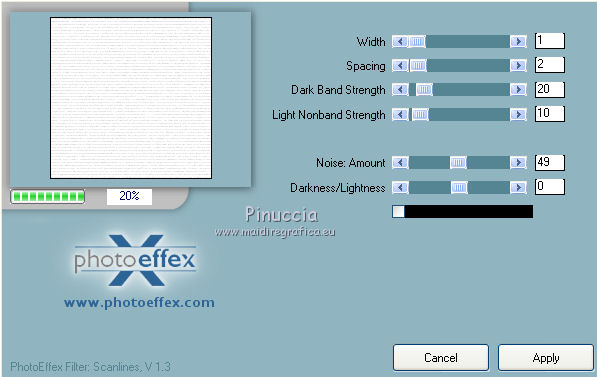 Effetti>Plugins>Photo Effex - Scanlines, con i settaggi precedenti.
