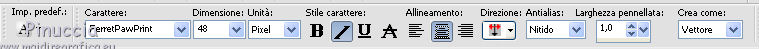 Per il testo fornito è stato usato il font FerretPawPrint con i seguenti settaggi.
