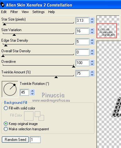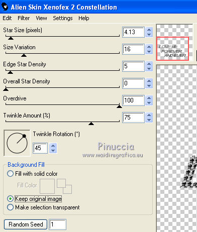 Ripeti l'Effetto Constellation, cambiando soltanto Star size con 3,13, senza cliccare su Random Seed.