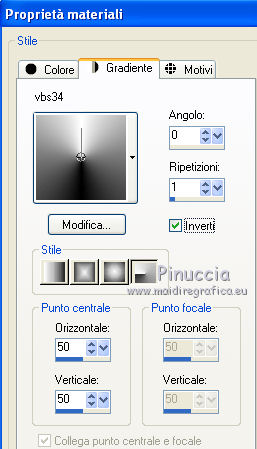 Passa il colore di primo piano a Gradiente e seleziona il gradiente vbs34 con i seguenti settaggi.