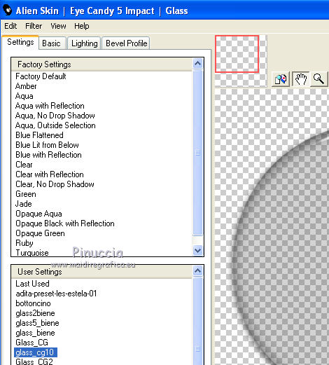 seleziona il preset Glass_cg10 e ok.