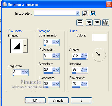 Effetti>Effetti 3D>Smusso a incasso, con i settaggi precedenti.