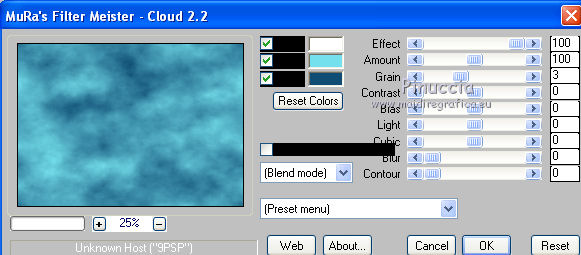 Premere successivamente il tasto Reset serve per cambiare casualmente (ragione per la quale il tuo risultato non potrà essere uguale al mio esempio, l'aspetto delle nuvole.