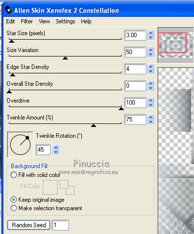 Ripeti l'Effetto Constellation, cambiando soltanto Star size con 3,00, senza cliccare su Random Seed.