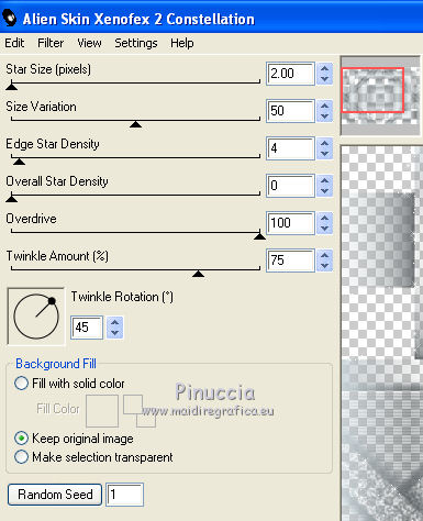 Ripeti l'Effetto Constellation, riportando Star Size a 2,00, senza cliccare su Random Seed.