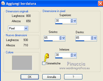 Immagine>Aggiungi bordatura, summetriche non selezionato con il colore di sfondo e i seguenti settaggi.