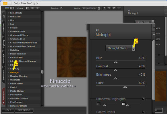 Effetti>Plugins>Nik Software - Color Efex Pro - Midnight, con i seguenti settaggi.