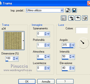 Effetti>Effetti di trama>Trama - seleziona la trama a34, con i seguenti settaggi.