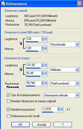 4. Immagine>Ridimensiona, al 120%, tutti i livelli non selezionato.