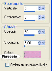 Effetti>Effetti 3D>Sfalsa ombra, con il colore usato per la maschera.