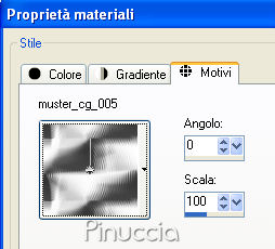 Passa il colore di primo piano a Motivi e seleziona il motivo muster_cg_005 con i seguenti settaggi.