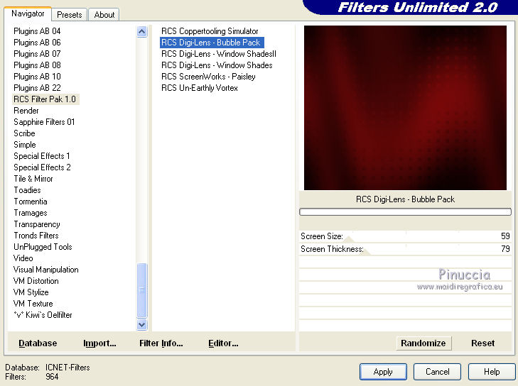 Effetti>Plugins>Filters Unlimited 2.0 - RCS Filter Pak 1.0 - RCS Digi-Lens-Bubble Pack.