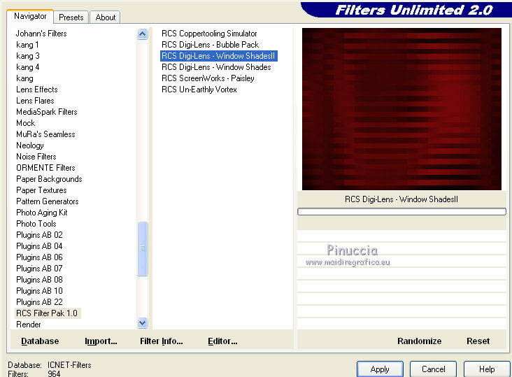 Effetti>Plugins>Filters Unlimited 2.0 - RCS Filter Pak 1.0 - RCS Digi-Lens - Window Shades II.
