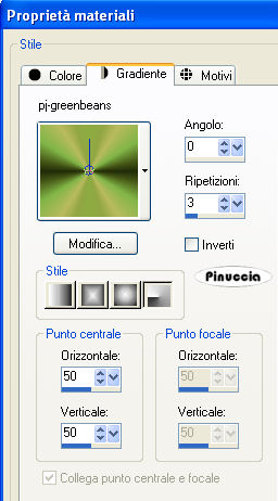 Passa il colore di primo piano a Gradiente e seleziona il gradiente pj_greenbeans con i seguenti settaggi.