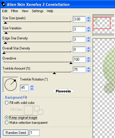 Ripeti l'Effetto Constellation, con gli stessi settaggi (senza cliccare su Random Seed).