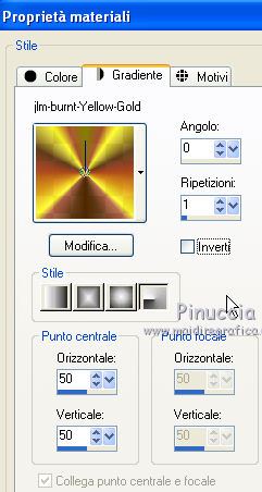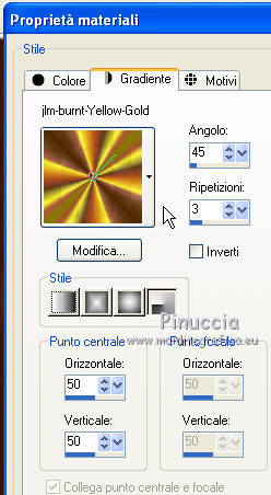 Passa il colore di primo piano a Gradiente e seleziona il gradiente jlm-burnt-Yellow-Gold con i seguenti settaggi.