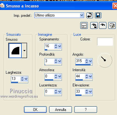 Effetti>Effetti 3D>Smusso a incasso, con i settaggi precedenti.