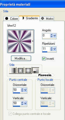 Passa il colore di primo piano a Gradiente - seleziona il gradiente bhw12 con i seguenti settaggi.