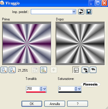 Regola>Tonalità e saturazione>Viraggio, con i settaggi precedenti.
