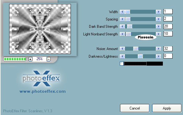 Effetti>Plugins>Photo Effex - Scanlines, con i settaggi del punto 1.