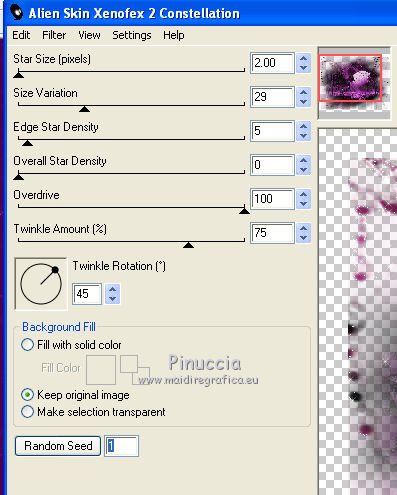 Ripeti l'Effetto Constellation, riportando Star size a 2,00 e cliccando su Random Seed.