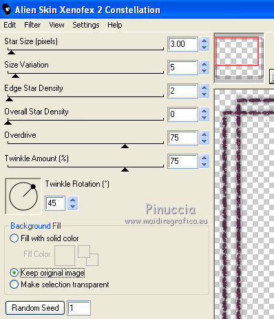 Effetti>Plugins>Alien Skin Xenofex 2.0 - Constellation, cambia soltanto Star Size con 4,00 senza Random Seed.