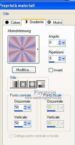 Passa il colore di primo piano a Gradiente e seleziona il gradiente Abendstimmung con i seguenti settaggi.