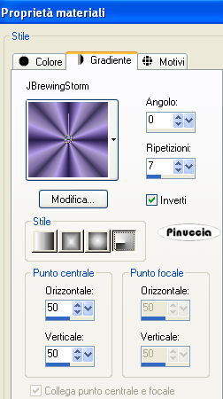 Passa il colore di primo piano a Gradiente e seleziona il gradiente JBrewing Storm con i seguenti settaggi: