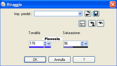 Regola>Tonalità e saturazione>Viraggio, con i settaggi precedenti.