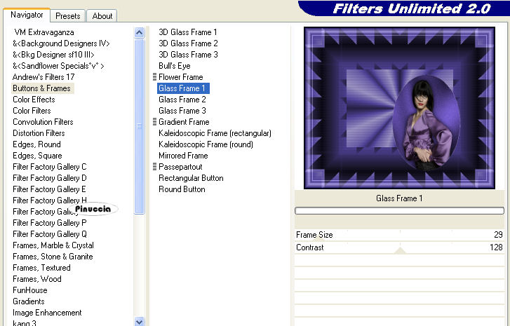 Effetti>Plugins>Filters Unlimited 2.0 - Buttons and Frames - Glass Frame 1.