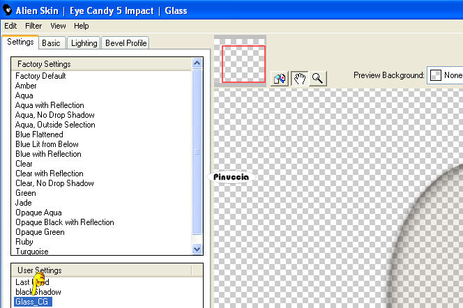 Metti il preset Glass_CG nella cartella del filtro: Alien Skin Eye Candy 5 Impact>Settings>Glass.