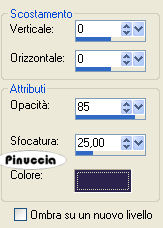 Effetti>Effetti 3D>Sfalsa ombra, con i settaggi precedenti, ma con il colore di sfondo.