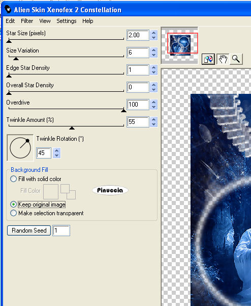 Ripeti l'Effetto Constellation cliccando due volte su Random Seed.