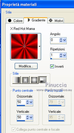 Imposta il colore di primo piano su Gradiente e seleziona il gradiente X Red Hot Mama, con i seguenti settaggi.