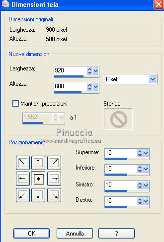 Immagine>Dimensione tela.