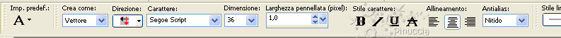 settaggi usati con PSP 9; dovrai regolare la dimensione in base al testo e alla versione di PSP che stai usando: