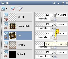 Attiva il livello del duplicato e clicca sul lucchetto per bloccare la trasparenza.