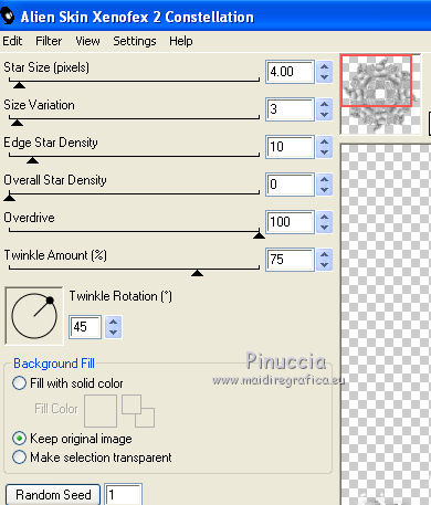 Ripeti l'Effetto Constellation, cambiando soltanto Star Size con 4,00, senza Random Seed.