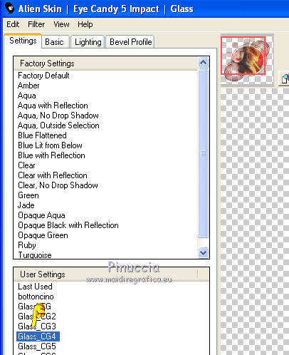 Effetti>Plugins>Alien Skin Eye Candy 5 Impact - Glass, con i settaggi precedenti.