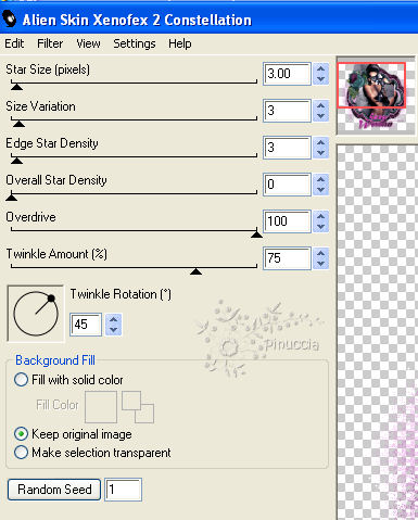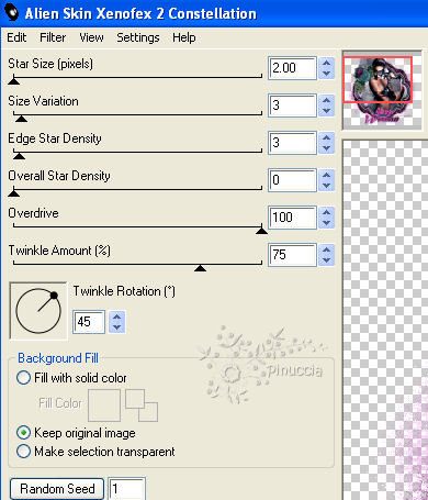 Ripeti l'Effetto Constellation, cambiando Star Size con 3,00 e senza cliccare su Random Seed.