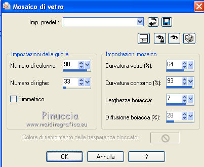 Effetti>Effetti di trama>Mosaico di vetro, con i settaggi precedenti.