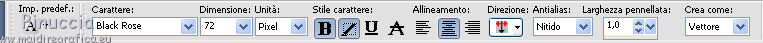 Per il file di testo è stato usato il font Black Rose, con i seguenti settaggi.