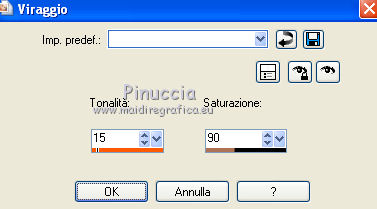 Regola>Tonalità e saturazione>Viraggio, con i settaggi precedenti.