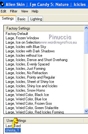 Effetti>Plugins>Alien Skin Eye Candy 5 Nature - Icicles;